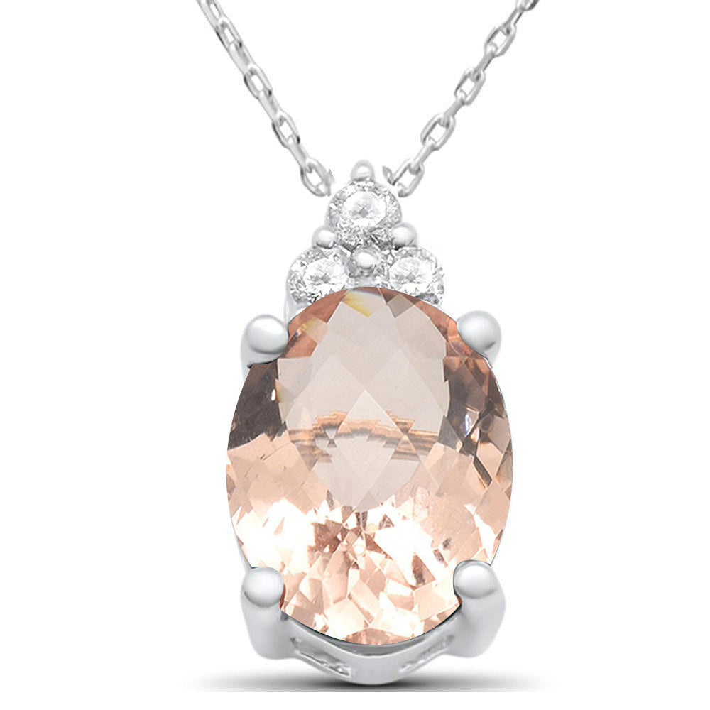 1.5ct 10k White Gold Morganite & Diamond Solitaire Pendant Necklace 18"