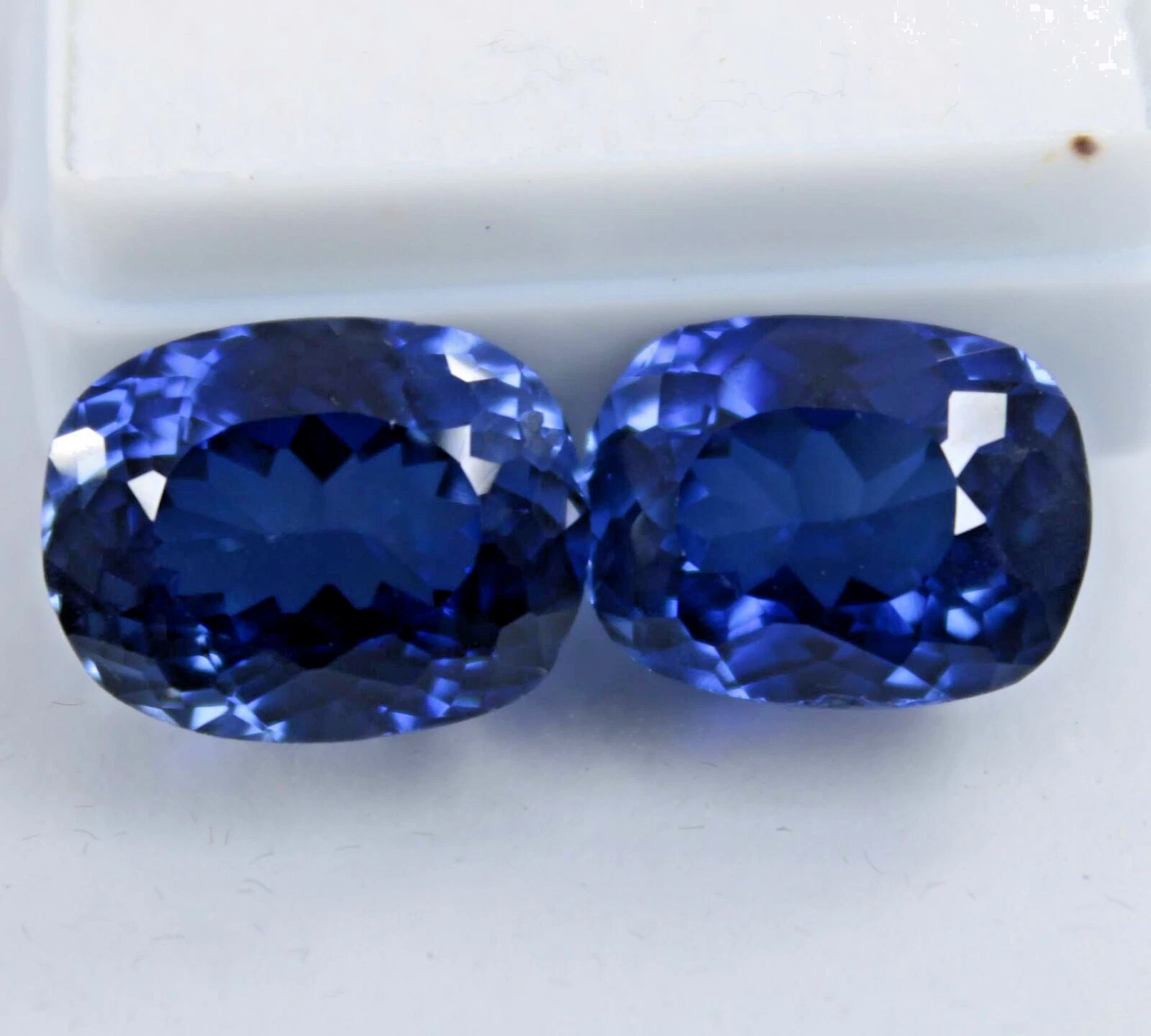 17.50 Ct Natural Kashmiri Blue Sapphire Cushion Certified Loose Gemstone Pair