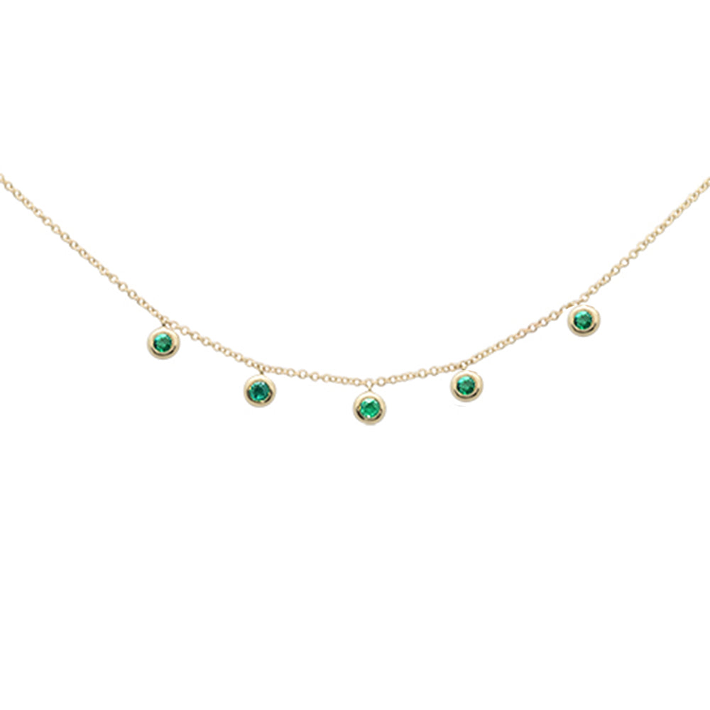 .25ct G SI 14K Yellow Gold Diamond Emerald Gemstone By The Yard Style Pendant Necklace
