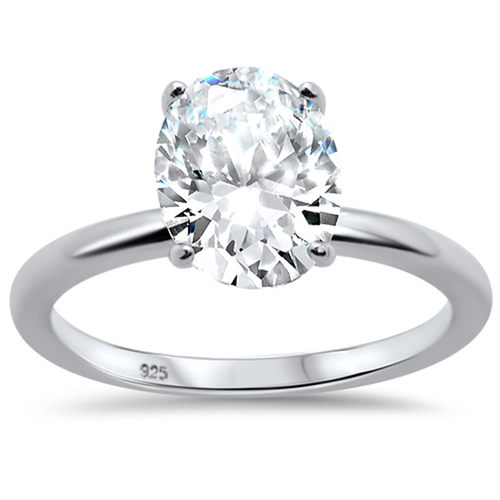 3.00ct 10x8mm Oval Cubic Zirconia .925 Sterling Silver Solitaire Engagement Ring Sizes 4-9