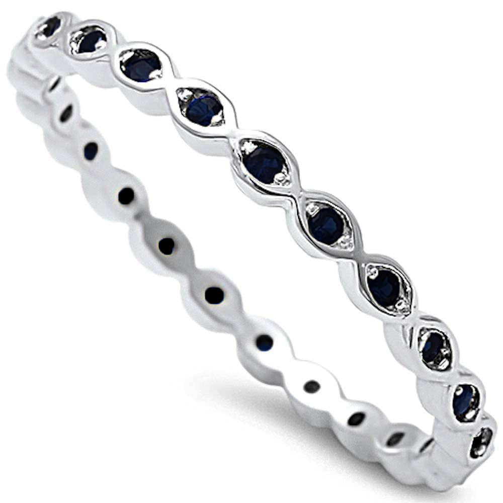 Black Onyx Eternity Band .925 Sterling Silver Ring Sizes 6-9