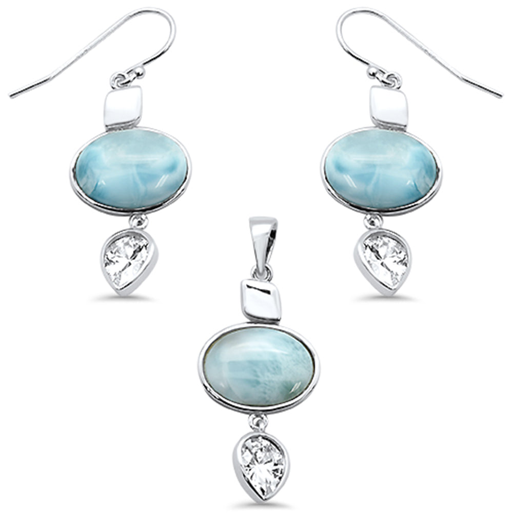 Larimar & Pear Cubic Zirconia .925 Sterling Silver Pendant & Earring Set