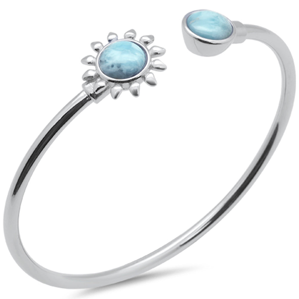 Natural Larimar Sunflower .925 Sterling Silver Cuff Bracelet