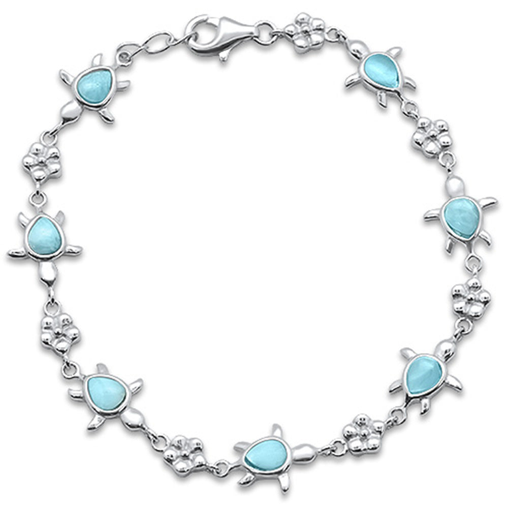 Natural Larimar Turtles .925 Sterling Silver Bracelet