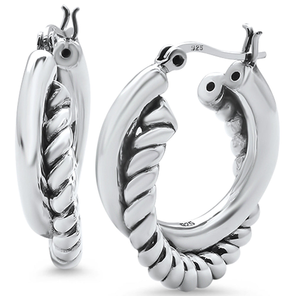 Plain Twisted Hoop Huggie .925 Sterling Silver Earrings 33MM