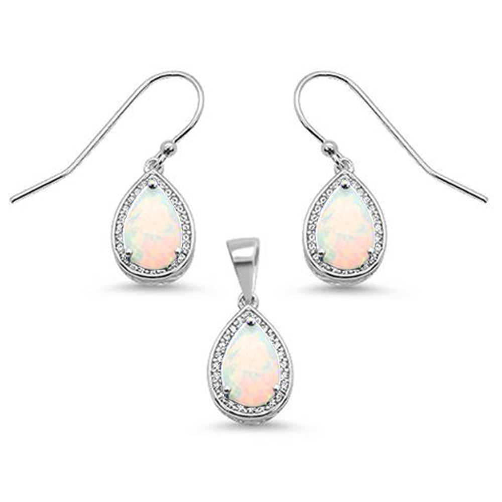 Pear Shape White Opal & Cubic Zirconia .925 Sterling Silver Earring & Pendant Set